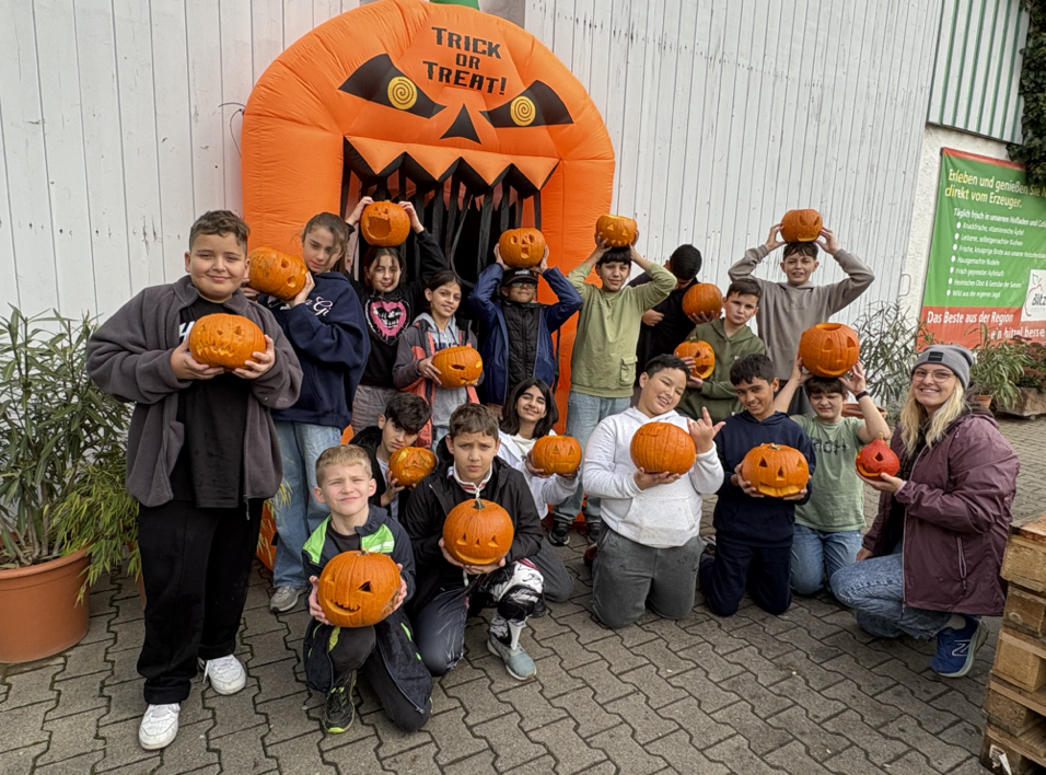Am 21. Oktober 2025 machte die 5. Klasse der WRS einen Ausflug zum Obsthof Bitzel nach Großsachsen. Das Wetter war sonnig und alle waren trotz der 4km Wanderung gut gelaunt. Nach der Ankunft wurden die Kinder herzlich von den Mitarbeitern des Obsthofs begrüßt. Die Schülerinnen und Schüler schnitzten mit viel Freude und voller Engagement ihre eigenen Kürbisse. Dabei entstanden viele kreative und lustige Gesichter. Anschließend besuchten sie noch die Ziegen im hofeigenen Streichelzoo und tobten auf dem Spielplatz. Zum Abschluss gab es frischen Apfelsaft aus eigener Herstellung und einen frisch gebackenen Schokoladenmuffin.