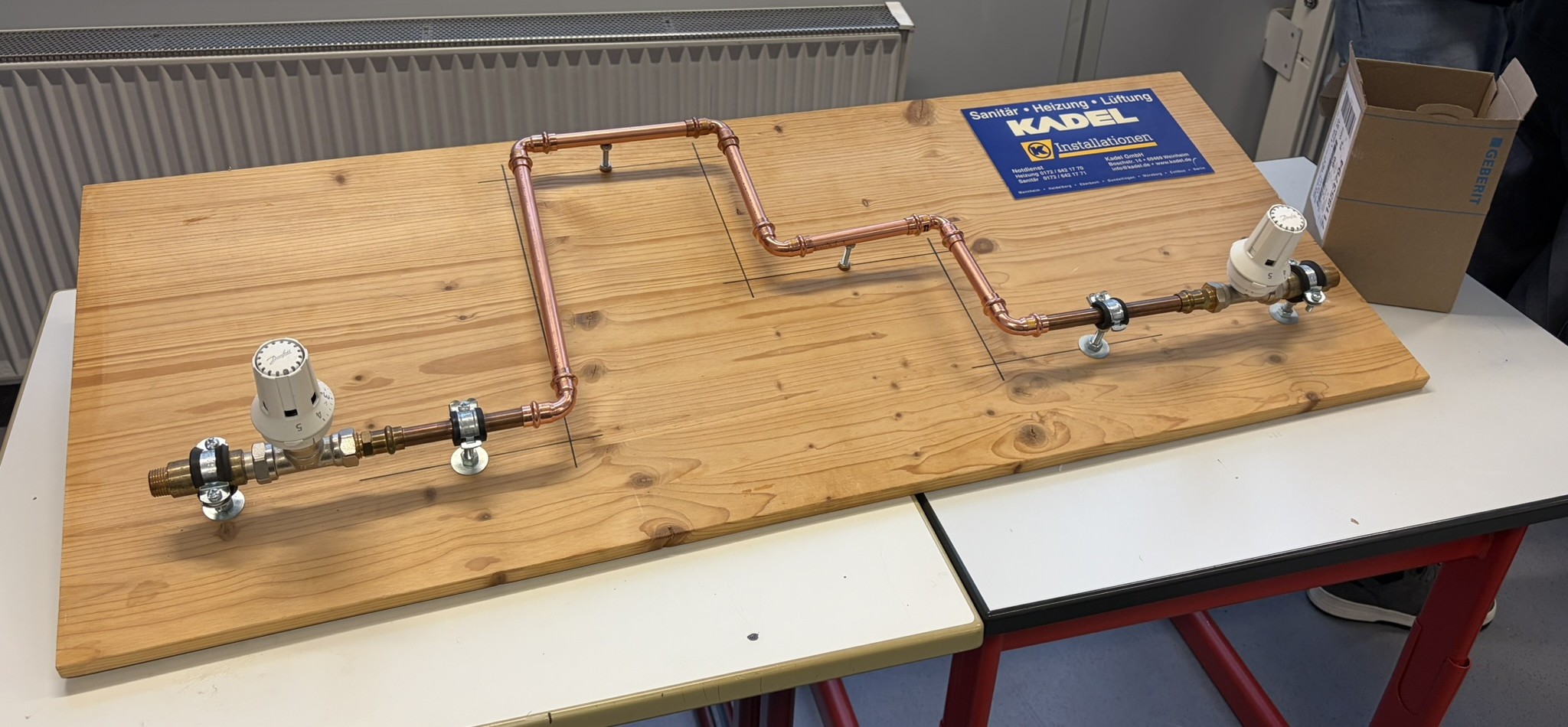 Die Firma Kadel legt großen Wert auf die nächste Generation und bildet aktuell 32 Azubis aus. Die duale Ausbildung dauert 3,5 Jahre und kombiniert Praxis (sanitäre Installation, Werkzeugkunde und Grundlagen der Metallbearbeitung) und Theorie. Aufgaben wie beispielsweise die Installation von Heizungs- und Sanitäranlagen (z.B. Rohrmontage), wie auch die Wartung bestehender Anlagen, bilden einen wichtigen Grundstein während der Ausbildung. Im Laufe des 2. bis 3. Ausbildungsjahres wird ebenfalls ein kleiner Elektroschein erlangt, wie auch die Arbeit im Bereich des Kundenservice vertieft. Im 4. Ausbildungsjahr liegt der Fokus auf der Prüfungsvorbereitung (z.B. auf die Gesellenprüfung) und der Spezialisierung auf einen Fachbereich.