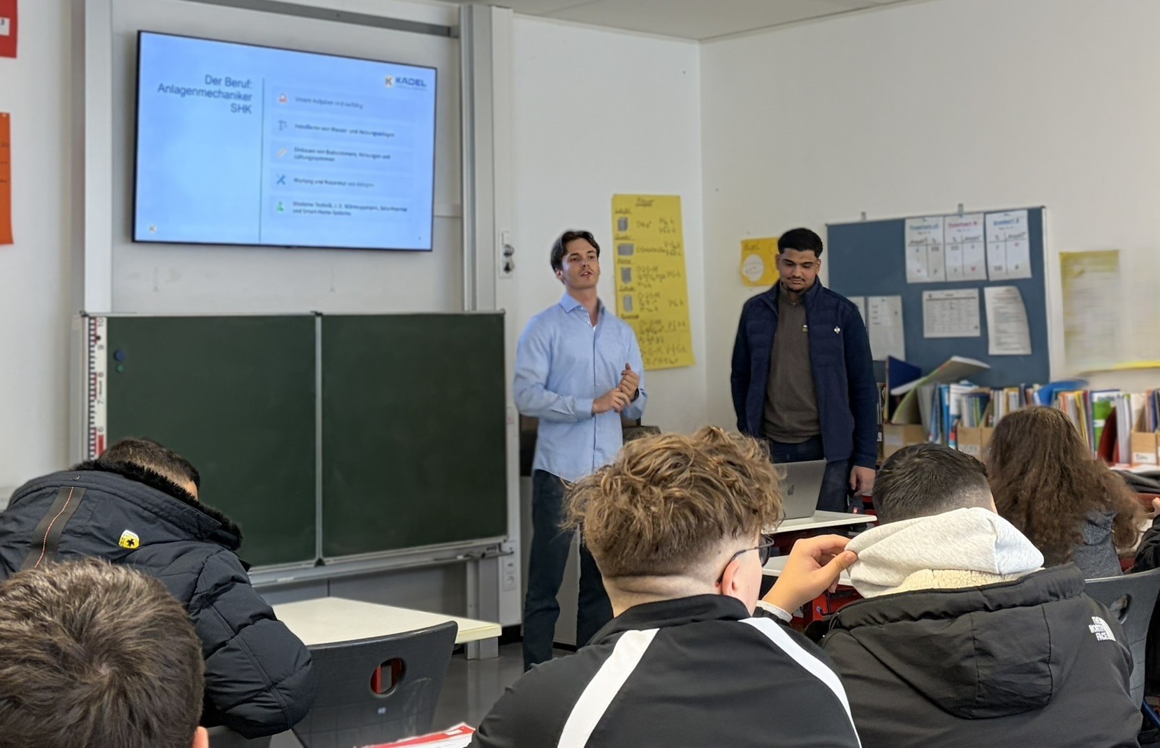 Am 25. November 2025 besuchte die Firma Kadel Sanitär-Heizung GmbH, ein 100 Jahre alter ausbildender Familienbetrieb aus Weinheim, die neunte Klasse der Dietrich-Bonhoeffer-Werkrealschule in Weinheim. Im Rahmen dieser Veranstaltung wurde der Beruf des Anlagenmechanikers SHK (Sanitär-, Heizungs- und Klimatechnik) durch den Geschäftsführer Herrn Jannick Kadel und den Auszubildenden Leon (aktuell im 2. Lehrjahr) vorgestellt.