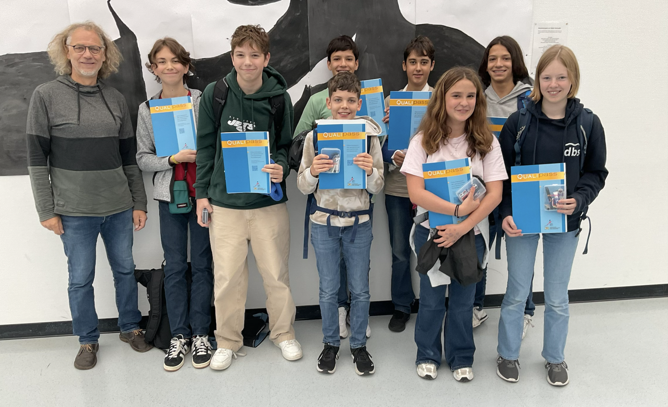 Durch Herrn Fröhlich vom ADFC Heidelberg (Allgemeiner Deutscher Fahrradclub) wurden die Schülerinnen und Schüler ausgezeichnet, die erfolgreich im letzten Schuljahr die Ausbildung zum „Schulradler“ gemacht haben. Unsere „Schulradler“ begleiten in den ersten drei Wochen die neuen 5. Klässlerinnen und 5. Klässler, die mit dem Fahrrad an die DBS kommen, sicher in die neue Schule.