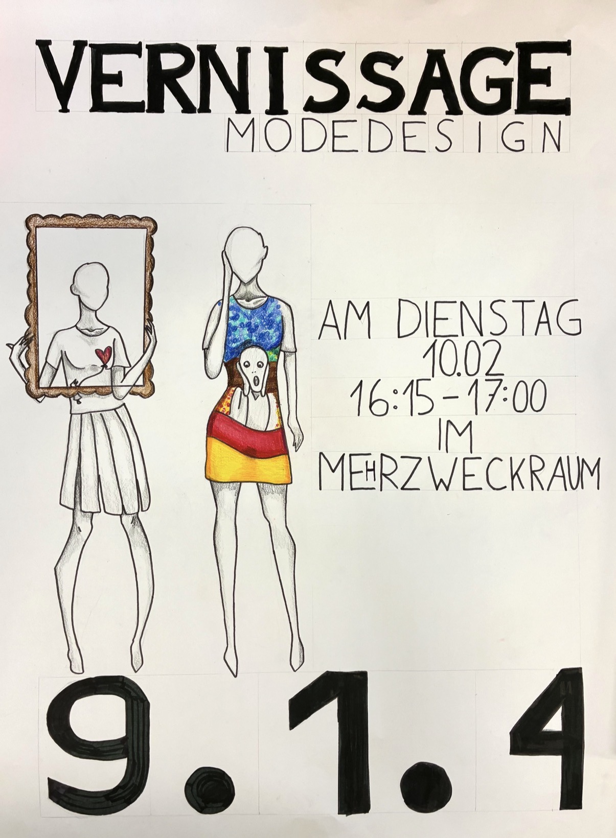 Liebe Eltern, liebe Schüler:innen, liebe Lehrer:innen, wir laden Sie und euch herzlich zur Werkpräsentation der Klasse 914 am Dienstag, den 10. Februar 2026, von 16:15 bis 17:00 Uhr in den Mehrzweckraum ein – direkt vor dem Elternsprechtag. Ausgehend von einem berühmten Gemälde hat jede:r Schüler:in ein eigenes Outfit entwickelt und mit verschiedensten Materialien umgesetzt. Ergänzend dazu verfassten wir im Deutschunterricht begleitende Texte. Außerdem werden Modeentwürfe zu sehen sein, die wir mithilfe von KI in einem Workshop im Museum für Kommunikation in Frankfurt am Main kreiert haben. Wir freuen uns auf Ihr und euer Kommen und einen inspirierenden Nachmittag! Für das leibliche Wohl sorgt gegen einen kleinen Beitrag die J1.